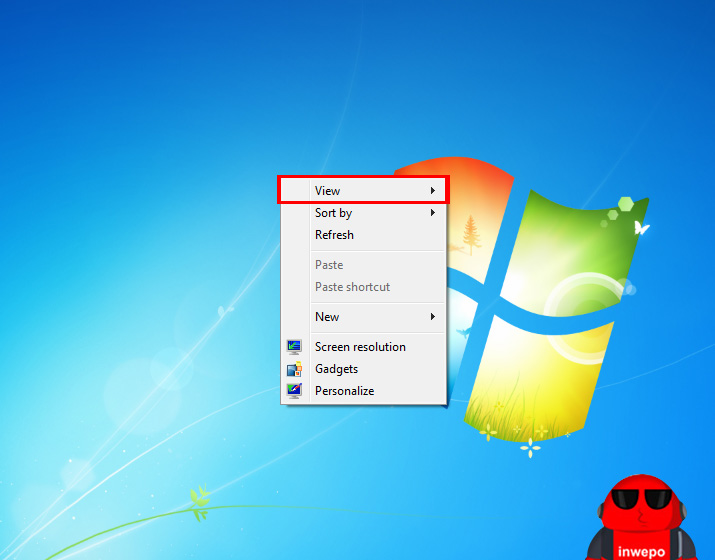 2. Klik kanan pada Desktop – Arahkan kursor ke menu View.