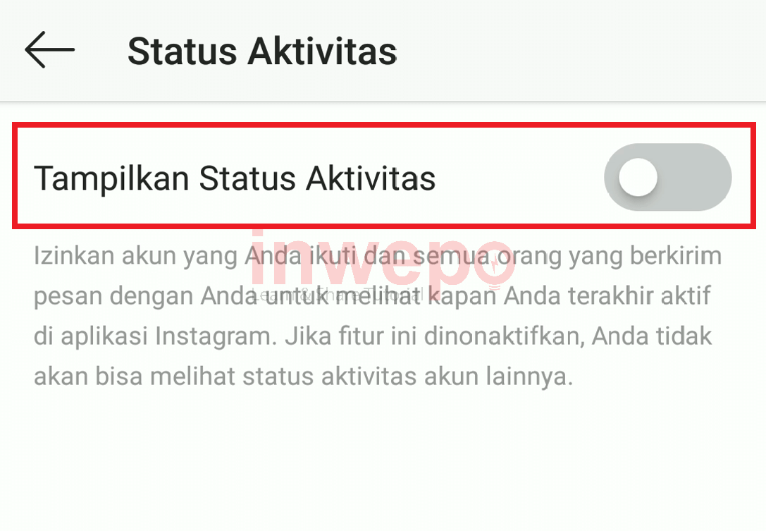 5. Lalu nonaktifkan pada menu tampilkan status aktivitas.