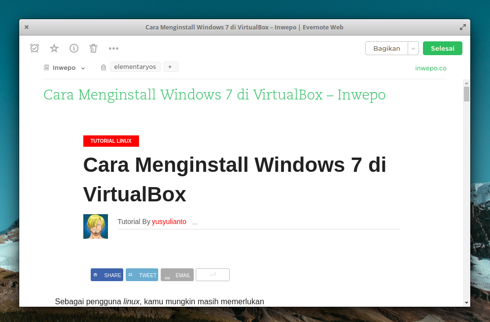 namun Evernote juga memiliki layanan tambahan yang memungkinkan kamu untuk menyimpan artikel dari suatu website ke dalam Evernote kamu untuk di baca lagi nanti. Bagaimana caranya? Berikut ini adalah langkah-langkahnya.