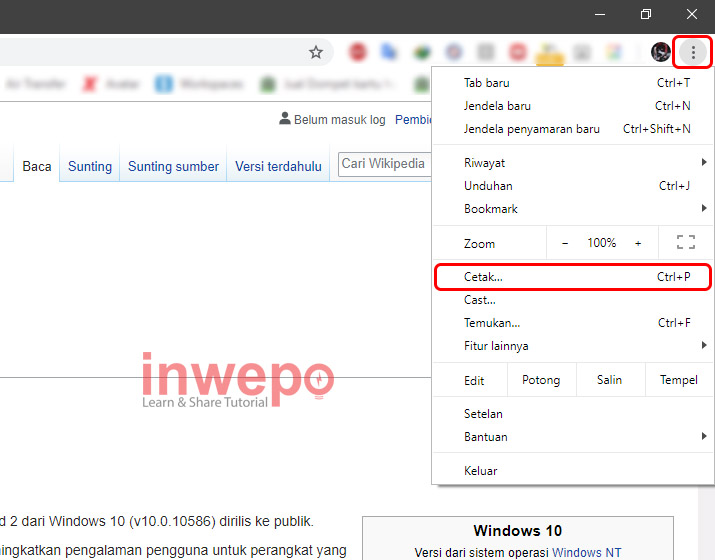 1. Klik ikon tiga titik di kanan atas – Klik “Cetak”.