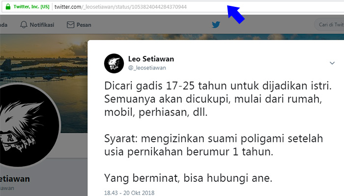 2. Copy link status kontroversial, kemudian simpan di notepad.