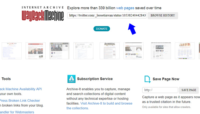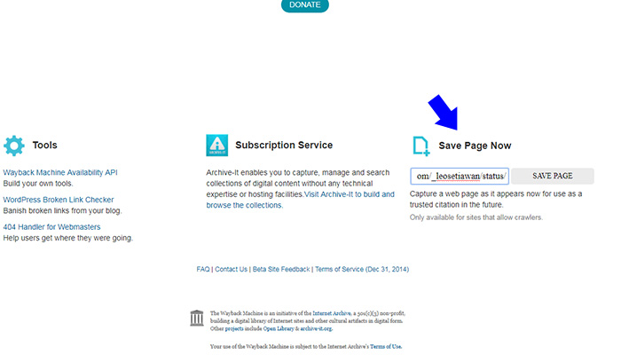 4. Klik Save Page, dan Wayback Machine akan menyimpan status kontroversial.