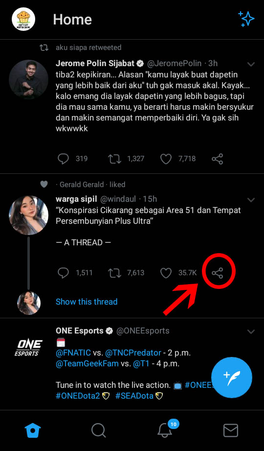2. Pilih tweet atau thread yang akan disimpan dan dibaca nantinya.
