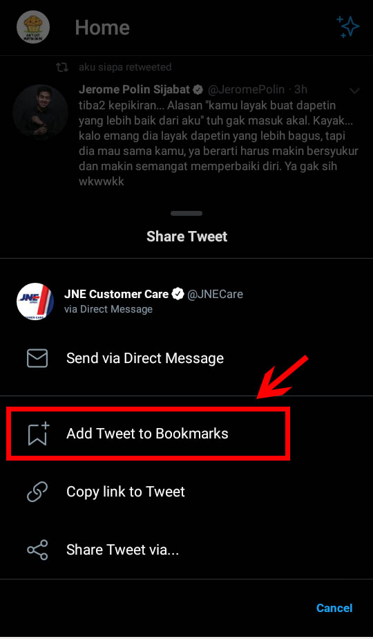 Barangkali, pengguna Twitter belum mengetahui ada satu fitur yang dapat digunakan untuk menyimpan utas atau thread, namanya fitur Bookmarks. Fitur bookmarks merupakan fitur penting saat ingin menyimpan utas yang akan dibaca kembali atau berfungsi juga untuk menyimpan tweet yang berkesan.