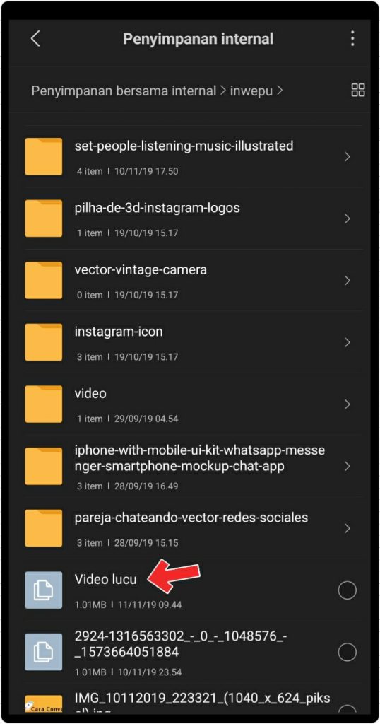 5. Ganti nama file tersebut agar mudah dicari saat dipindahkan nanti. Tujuan memindahkan file video adalah agar video ini tersimpan secara permanen di handphone kita.