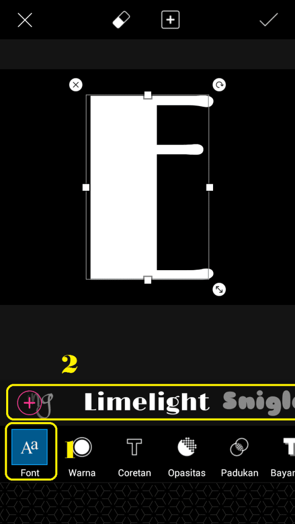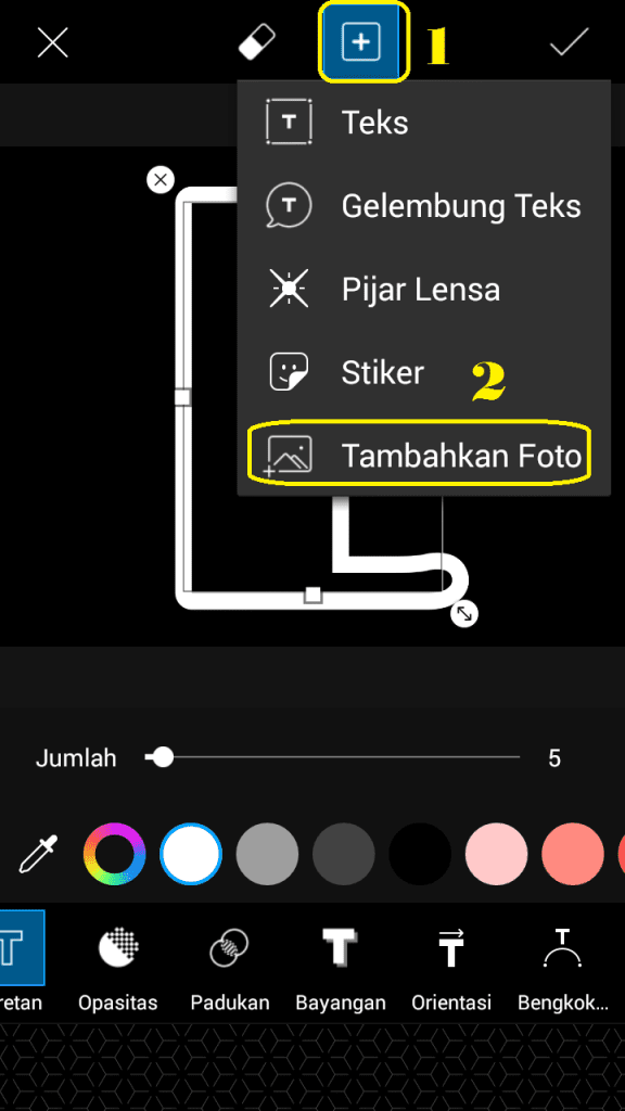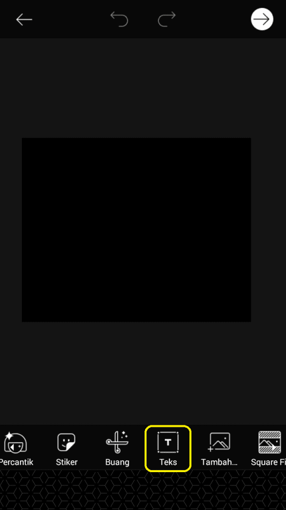 7. Pilih ‘Teks’. Dan ketikkan huruf.