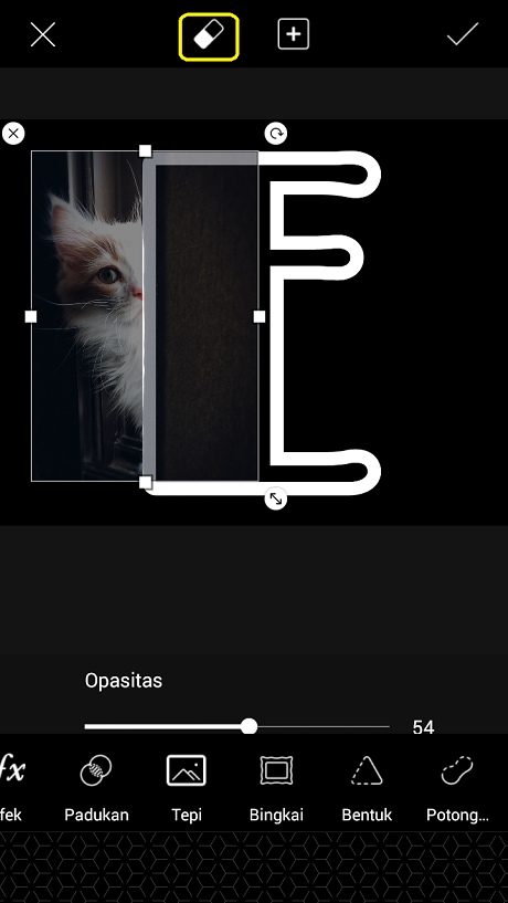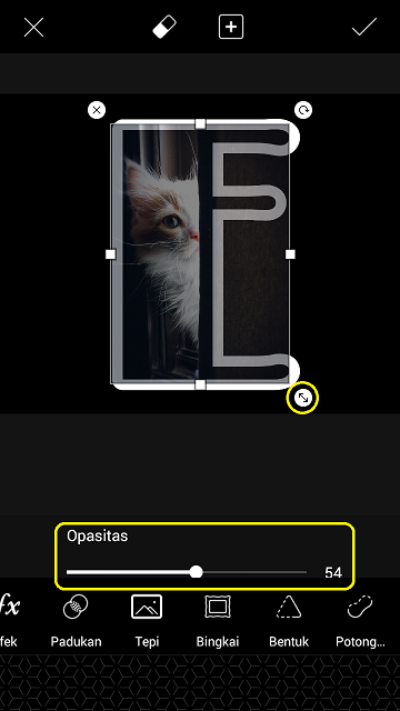 13. Perbesar ukuran foto, ubah nilai ‘Opacity’ menjadi 54.