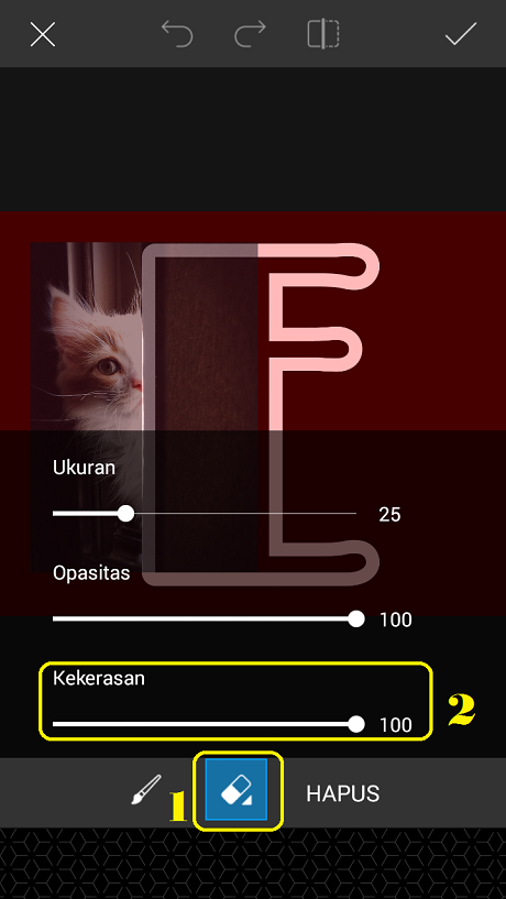14. Untuk menghapus background foto, kita klik icon ‘Eraser’.
