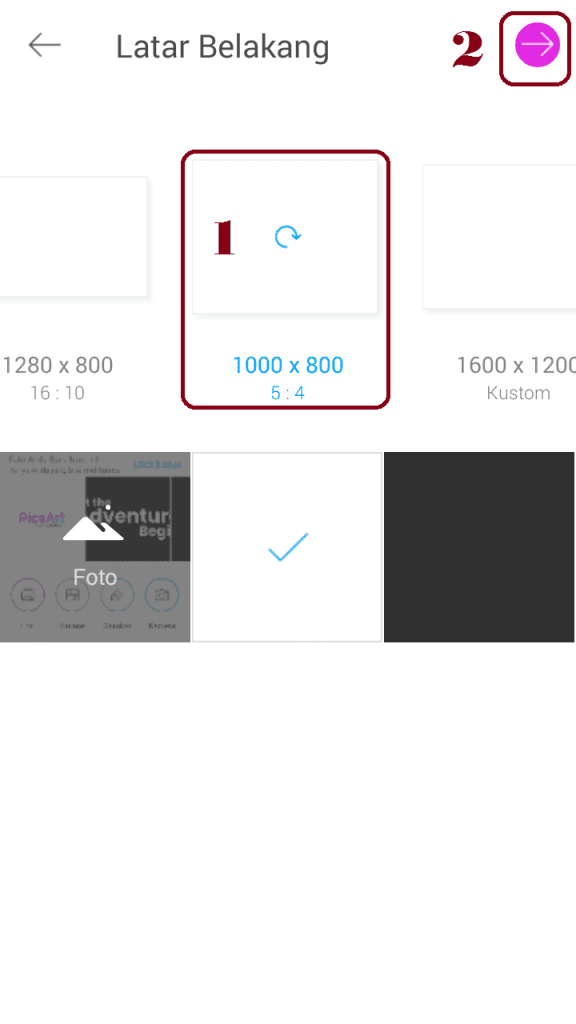 3. Tentukan ukuran background dan klik panah.