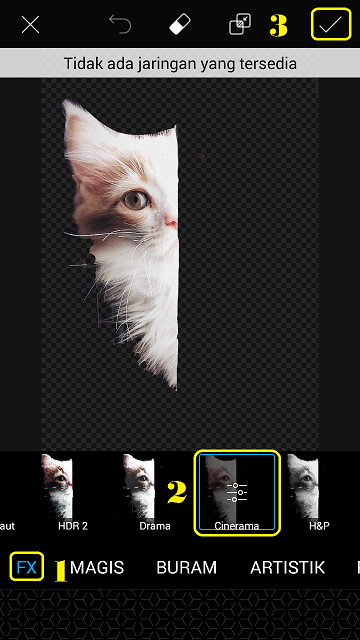 19. Sekarang, kita akan menambahkan efek pada gambar. Klik tool ‘Effect’.