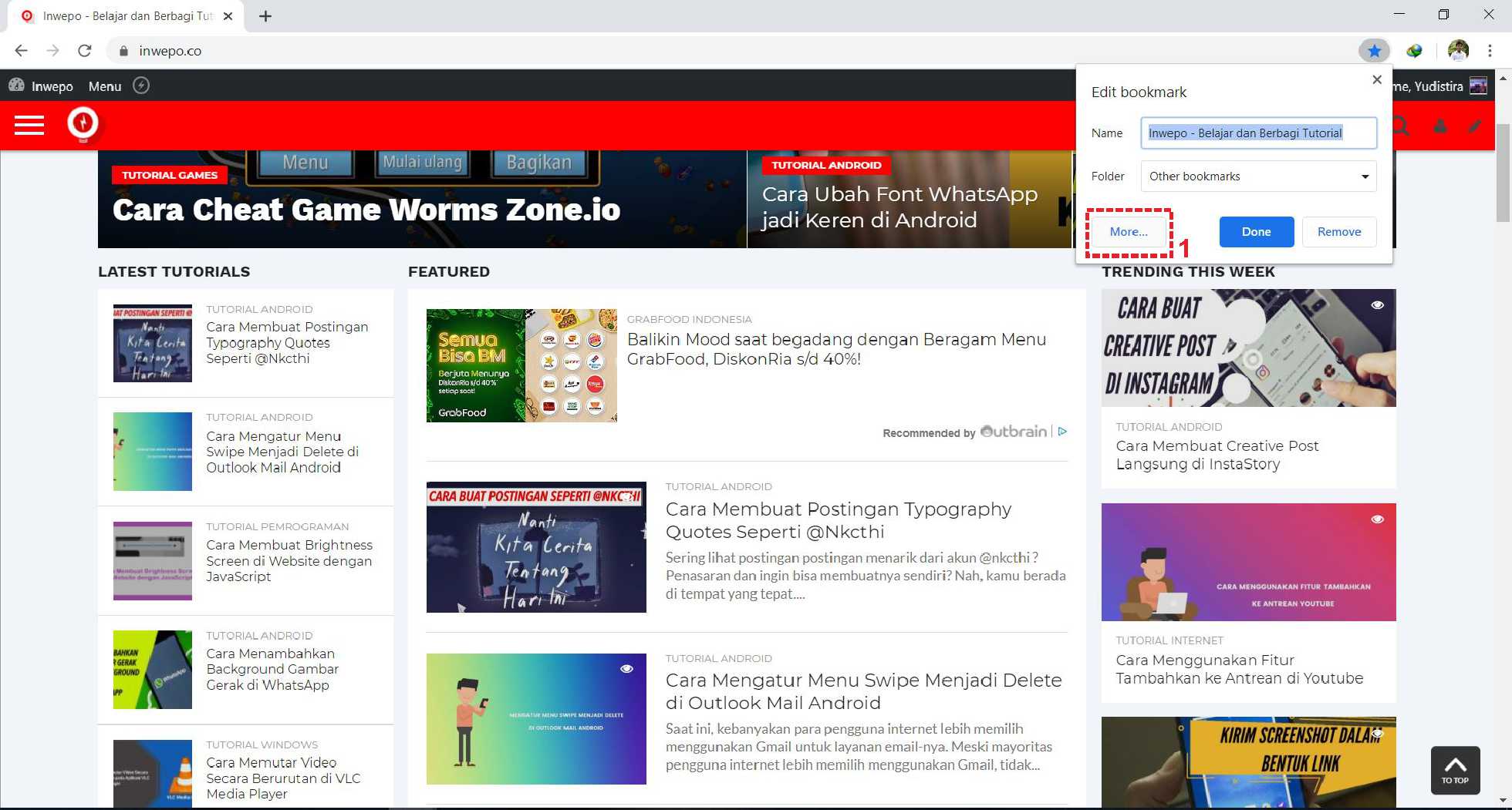 2. Setelah muncul kotak dialog edit bookmark, pilih menu “more”.