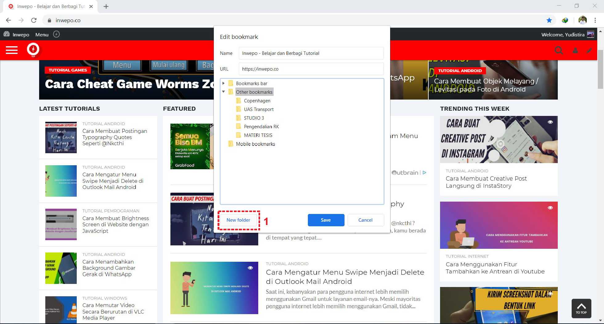 5. Selesai. Secara langsung alamat web yang di bookmark akan masuk ke folder tersebut.