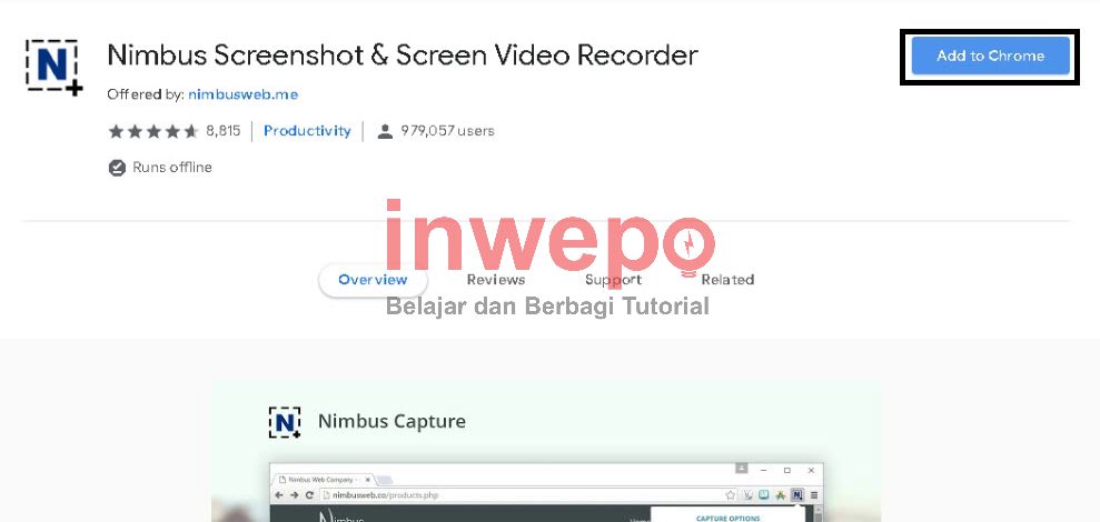 1. Kamu kunjungi terlebih dahulu ekstensi google chrome Nimbus Screenshot & Screen Video Recorder.