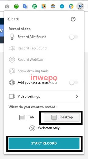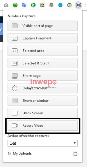 5. Jika proses pemasangan sudah selesai, maka akan muncul icon baru di sudut kanan atas Google Chrome dan kamu klik pada icon tersebut dan klik pada tombol Record Video.