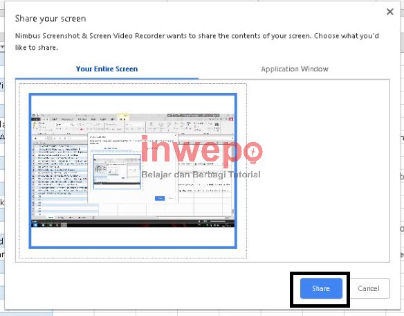 8. Lalu kamu akan melihat tampilan secara realtime tampilan desktop kamu, jika sudah siap untuk merekam layar, kamu klik tombol Share dan proses perekaman layar dimulai.