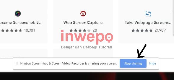 9. Pada saat proses perekaman, tampilan Google Chrome akan terus menampilkan menu kecil di bagian bawah dimana menu itu ada menu untuk menghentikan proses perekaman, klik tombol itu jika kamu ingin berhenti / selesai merekam.