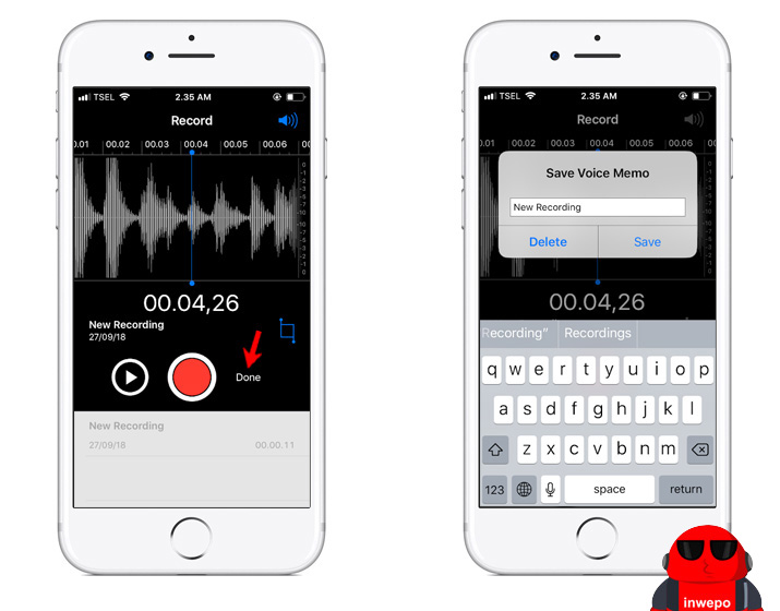 4. Lalu ketuk Done – Tulis nama untuk rekaman tersebut – pilih Save.