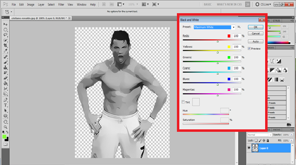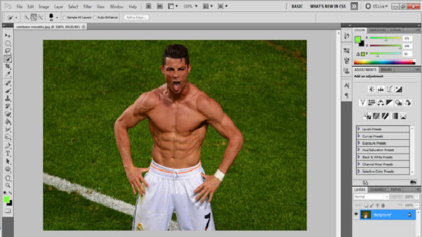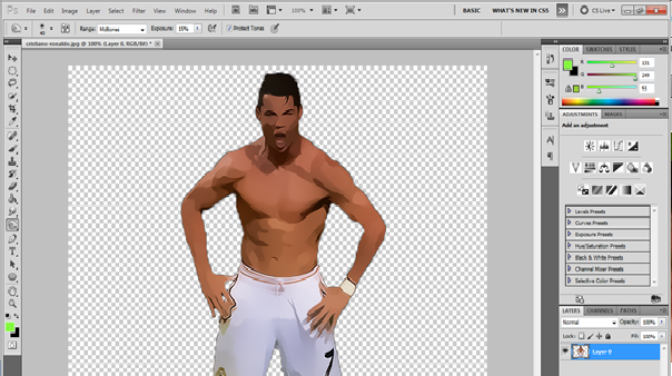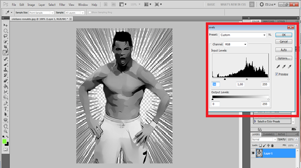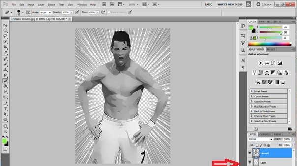 buka photoshop dan masukan gambar yang akan kita buat menjadi komik disini Inwepo mengambil contoh Cristiano Ronaldo.