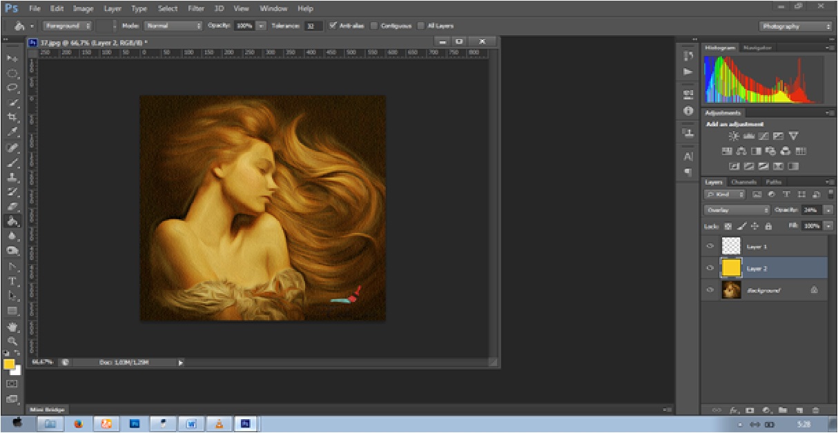 Terakhir ubah layer baru tadi ke Overlay an offacity-nya 24%.