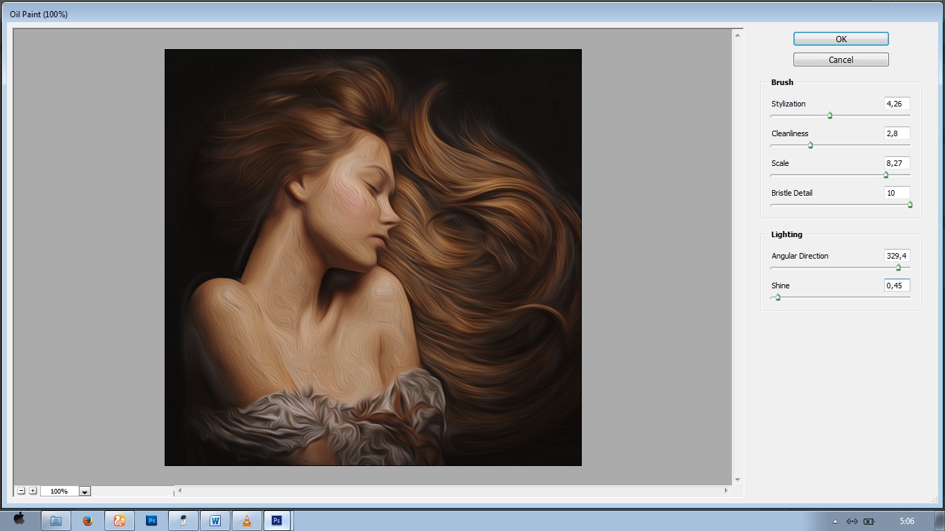 Kemudian masuk ke Filter – Oil Paint. Atur nilainya seperti di bawah.