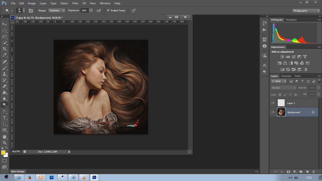 Gunakan Juga Burn Tool untuk menggelapkan gambar yang harusnya gelap dengan Exprosure : 15%.