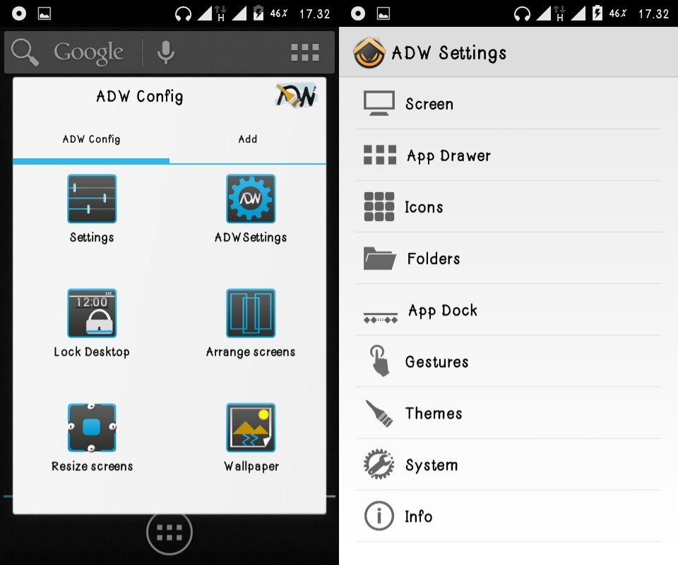 6. Setelah itu, buka aplikasi Adw Launcher. Lalu tekan lama, atau tombol menu hingga muncul beberapa pilihan dari menu setting Adw. Setelah muncul, pilih “Adw Setting”