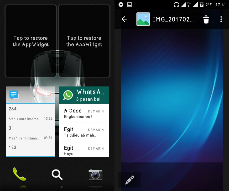 8. Lalu kembali pada Adw Launcher, refresh kan semua widgetnya. Dan rubahlah wallapernya dari galery pada folder “Blackberry Icon Pack”