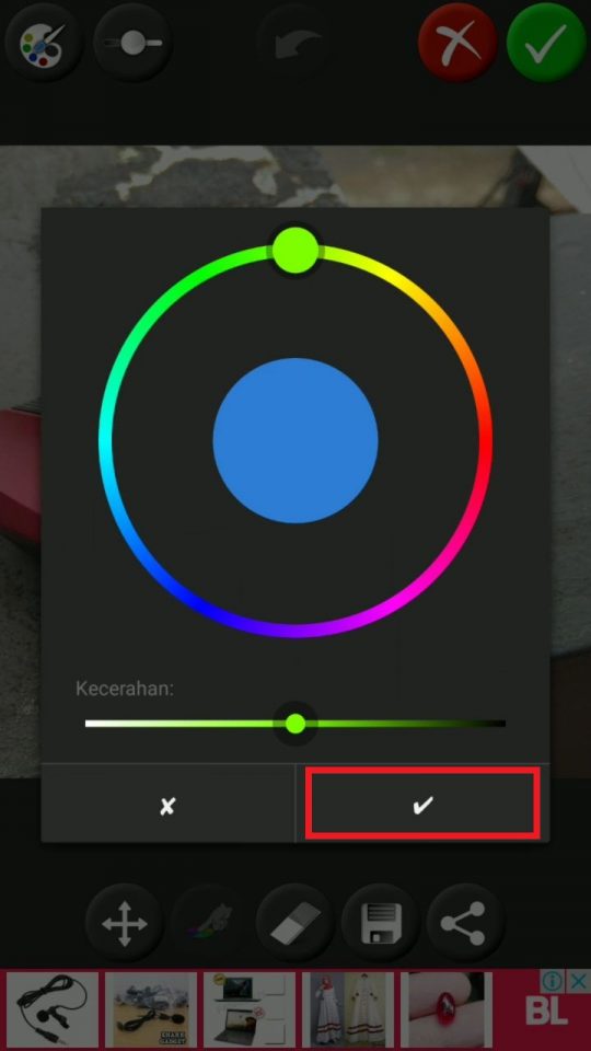 6. Lalu pilih warna yang ingin kamu gunakan, dan jika sudah tap lambang centang untuk ok. seperti pada gambar di bawah ini.