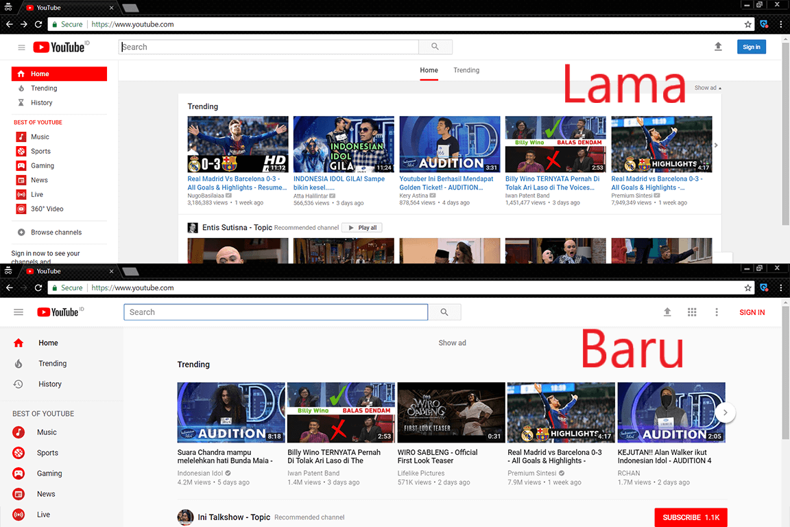 I. Cara mengganti tampilan YouTube lama ke YouTube baru