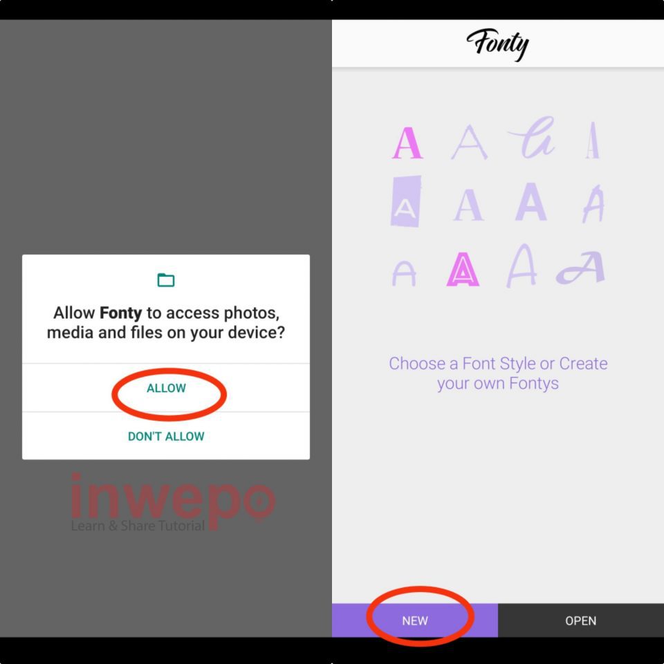 2. Buka aplikasi Fonty lalu tap menu Allow, tap New untuk membuat font baru mu sendiri.