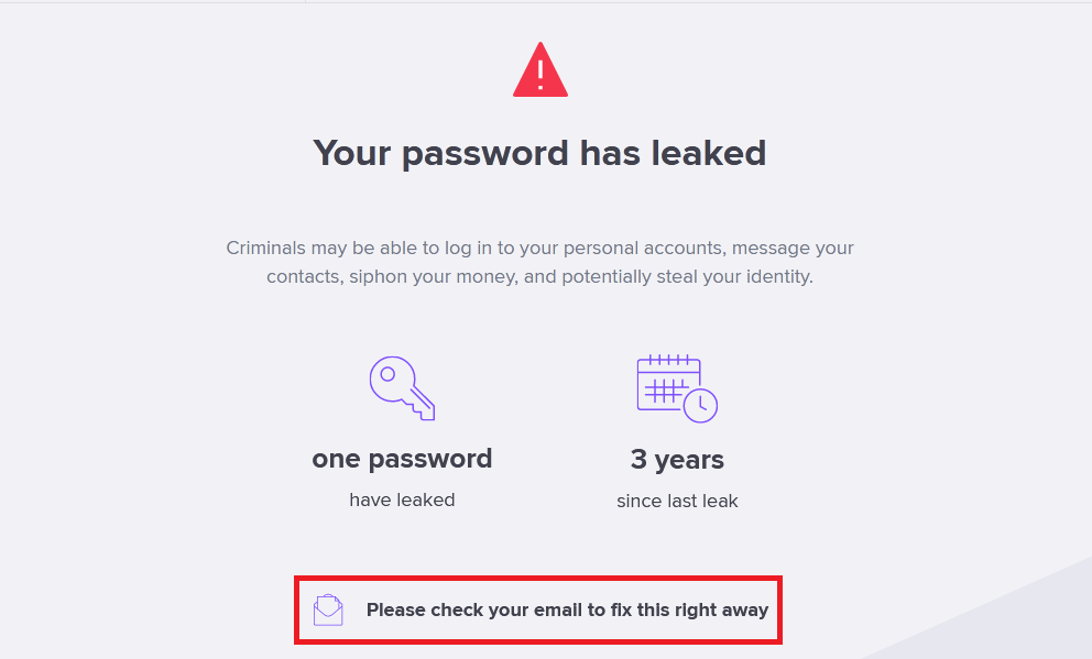 3. Ternyata email dan password saya pernah bocor, klik link ‘please check your email to fix this right now’ untuk mengetahui informasi lebih lanjut.