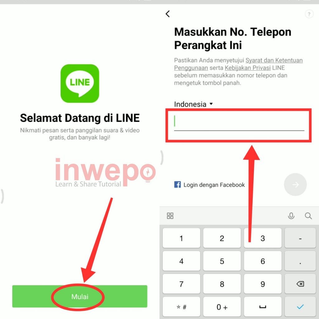 2. Buka aplikasi LINE lalu tap Mulai dan masukkan nomer telepon seluler kamu untuk verifikasi atau masuk ke LINE.