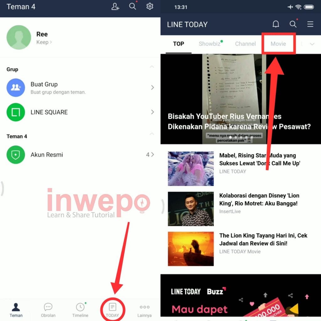 3. Jika sudah masuk ke aplikasi tap menu Today kemudian lanjut dengan tap menu Movie.