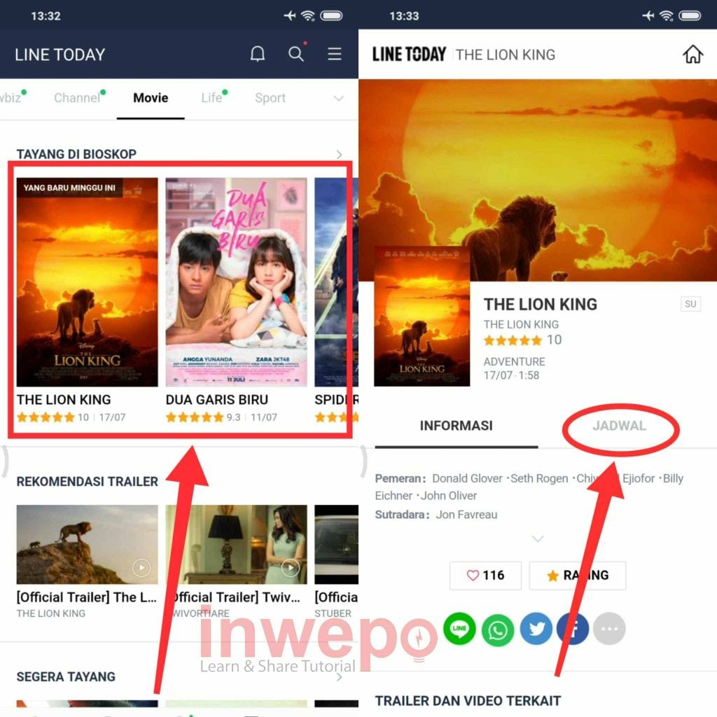4. Pilih salah satu film yang ingin kamu tonton, berikutnya tap menu JADWAL.