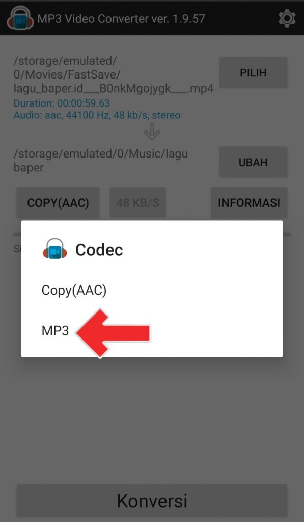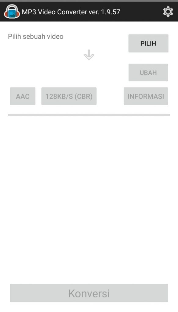 - Menu “pilih” digunakan untuk memasukkan video yang akan di convert ke audio.