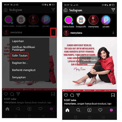 Cara copy link foto dan video di Instagram.