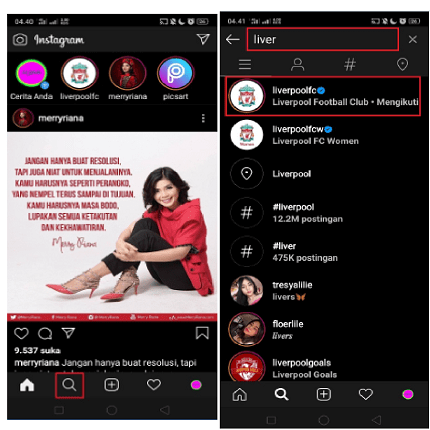 3. Klik ikon search untuk mencari akun Instagram yang ingin kamu copy link-nya.