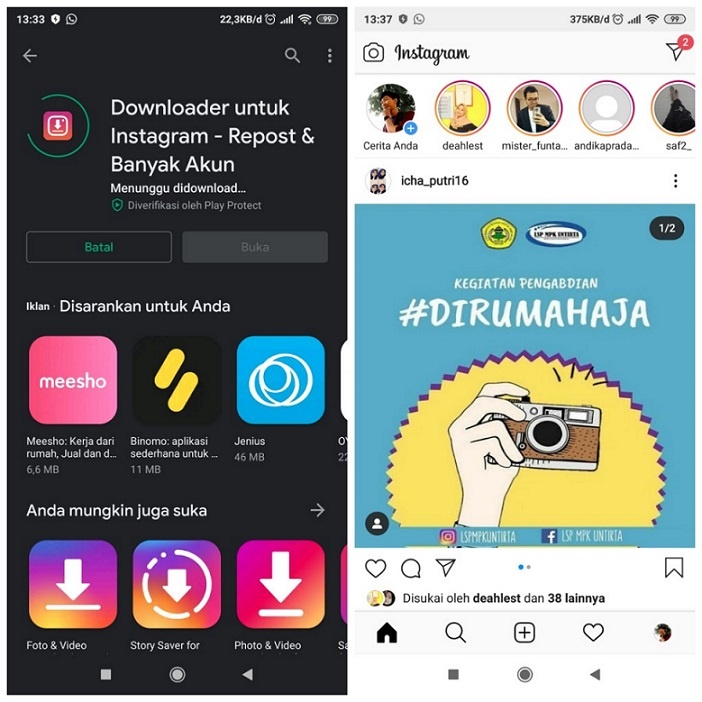Mungkin beberapa orang juga membuat akun di Instagram sebagai tempat sharing video-video lucu ataupun jokes yang lucu dan mungkin beberapa orang yang melihatnya ingin download gambar atau video tersebut dan membagikannya dengan teman-temannya.