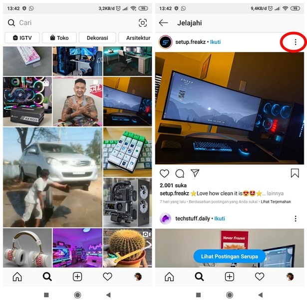 4. Kemudian pilih tombol titik tiga yang terletak dipojok kanan atas video atau foto.