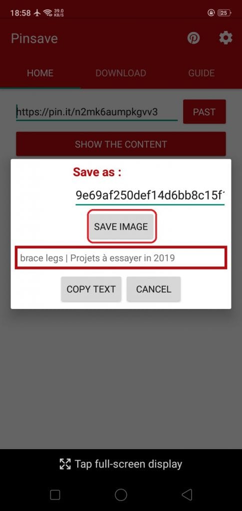 7. Nanti kamu akan diarahkan ke aplikasi Pinsave, pada pop up download gambar, kamu pilih Save Image.