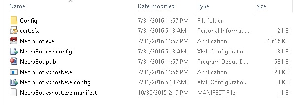 3. Buka file NecrotBot.exe. Untuk pertama kali Bot akan terbuka lalu tertutup kembali, dikarenakan untuk membuat file .json dalam folder Config yang nanti kita akan setting.