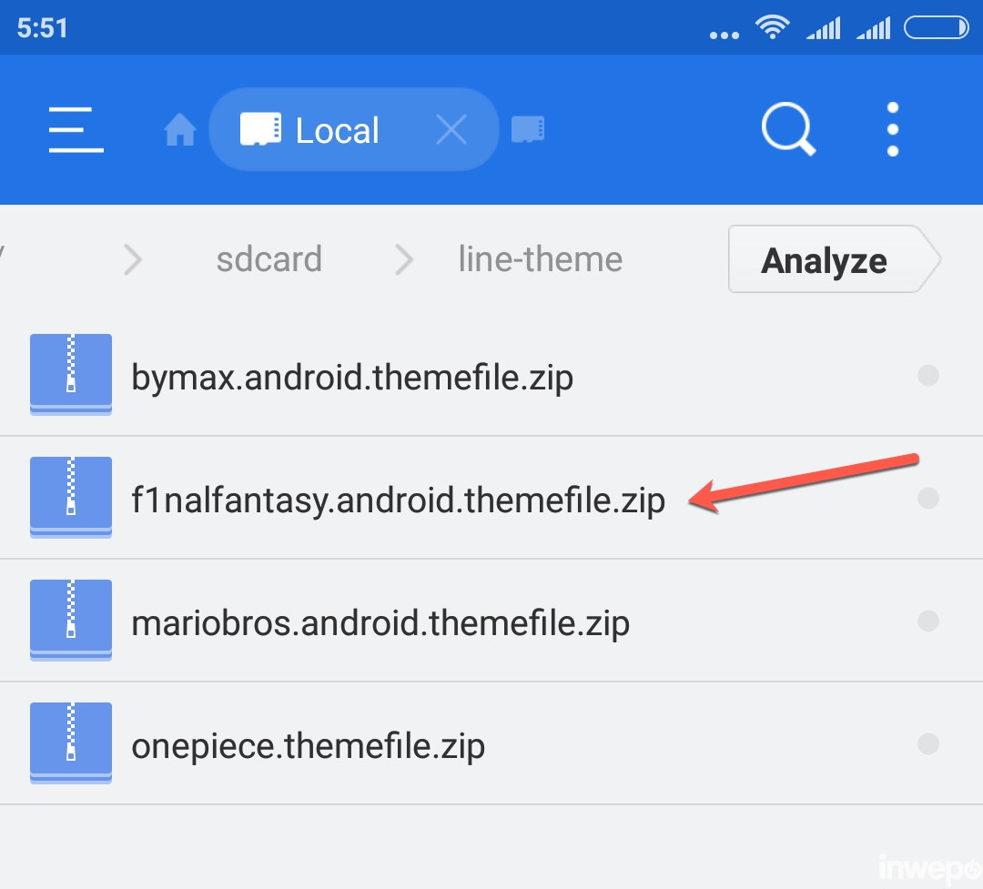 3. Buka aplikasi ES File Explorer, lalu pindahkan tema LINE yang sudah kamu download ke dalam folder /sdcard/LINE-theme.