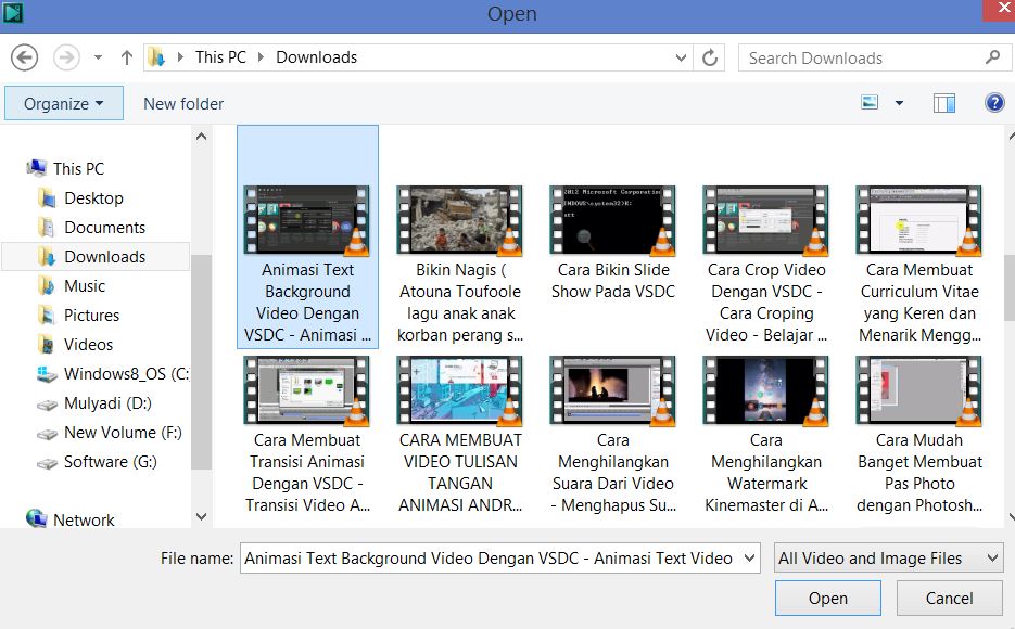 4. Kemudian langkah berikutnya adalah tinggal kamu pilih saja video mana yang akan di import ke dalam VSDC.