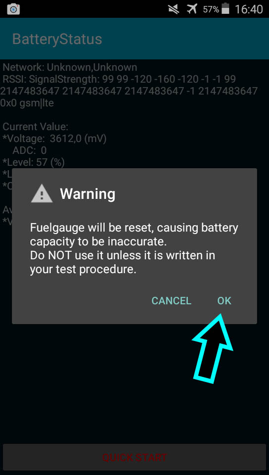4. Selanjutnya, pilih Quick Start. Setelah itu, akan muncul notifikasi dan klik Ok ,HP kamu akan mengalami restart sesaat. Setelah melakukan restart, daya baterai akan menurun yang menandakan bahwa ada masalah dengan baterai.