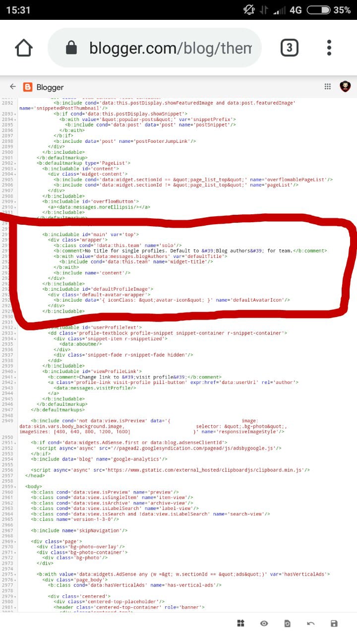 1. Log in ke akun Blogger -Tema – Edit Html.