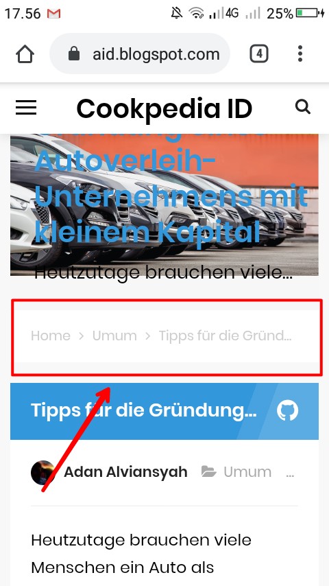 Berikut adalah tampilan Breadcumbs yang telah terpasang di Blogger.