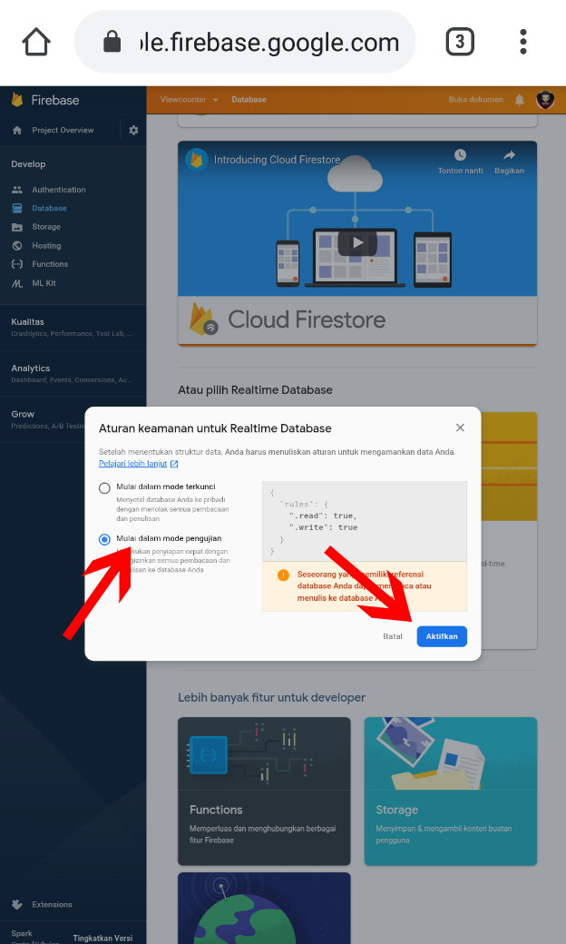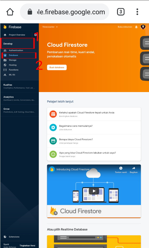1. Login atau Register akun di Firebase Google