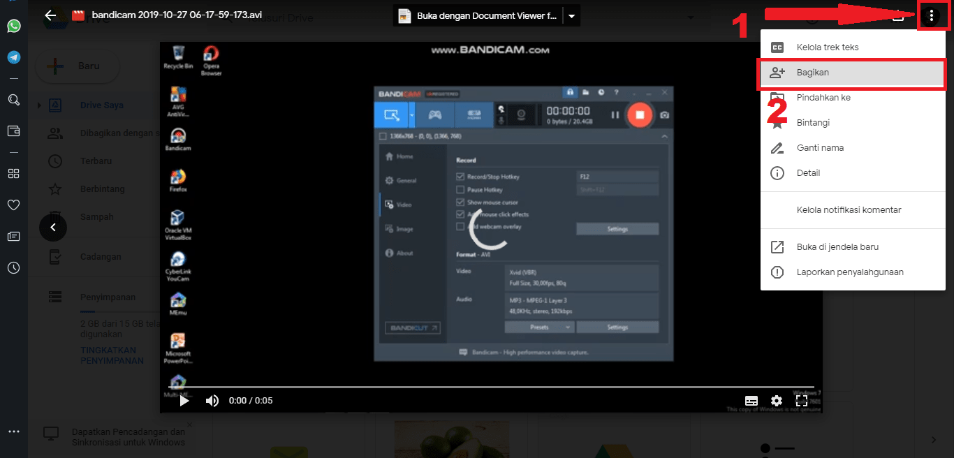 6. Jika muncul Pop up, pilih tanda Titik tiga yang ada di pojok kanan atas. Lalu pilih menu Bagikan.