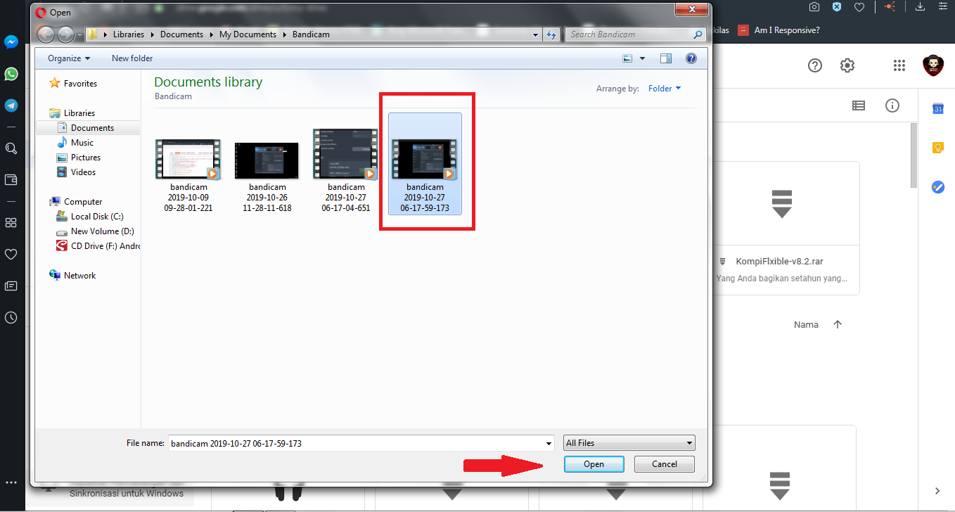 3. Pilih video yang akan dimasukan/embed ke dalam blog dan klik Open.
