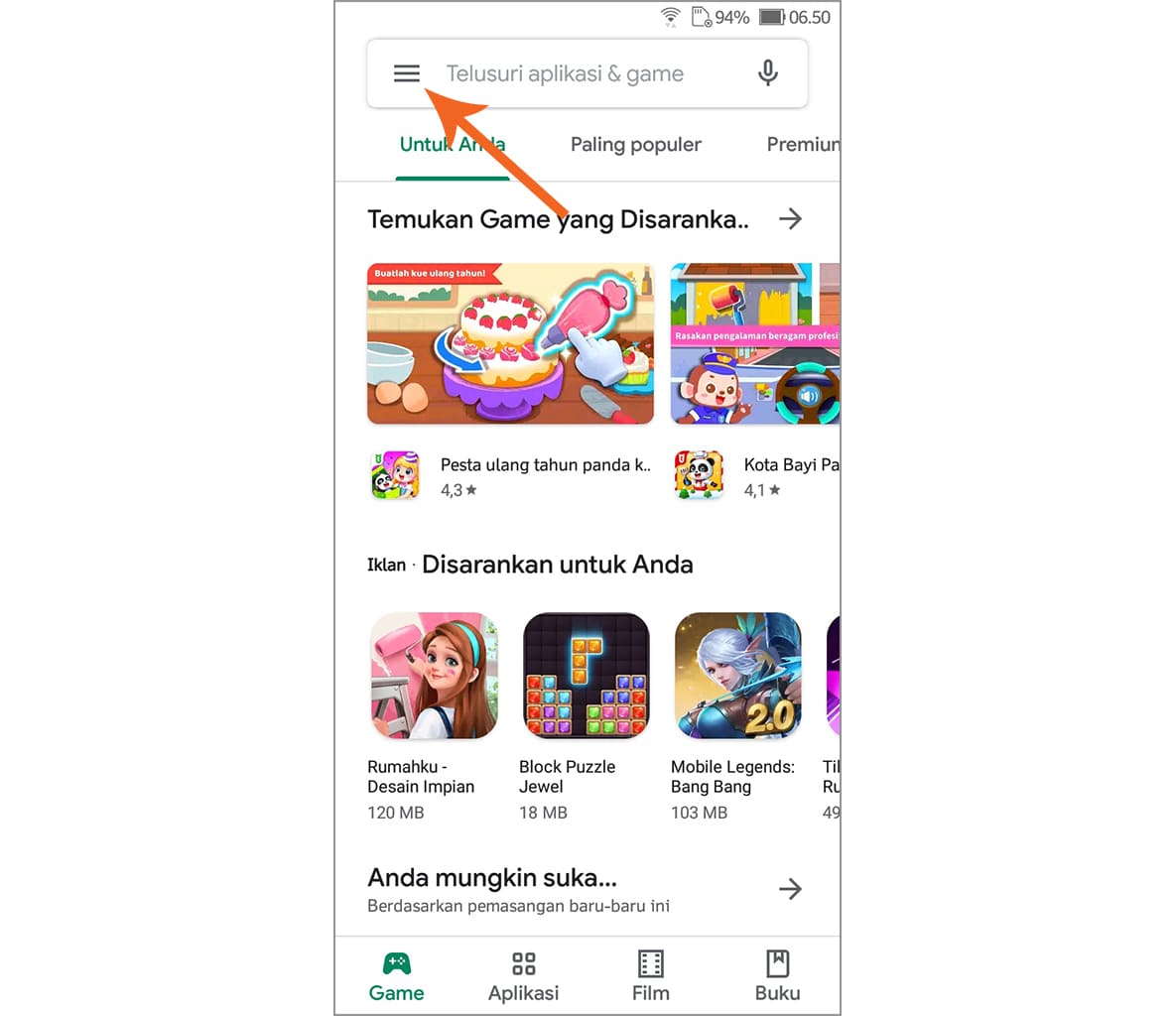 2. Ketuk tiga garis horizontal yang terletak di pojok kiri atas.